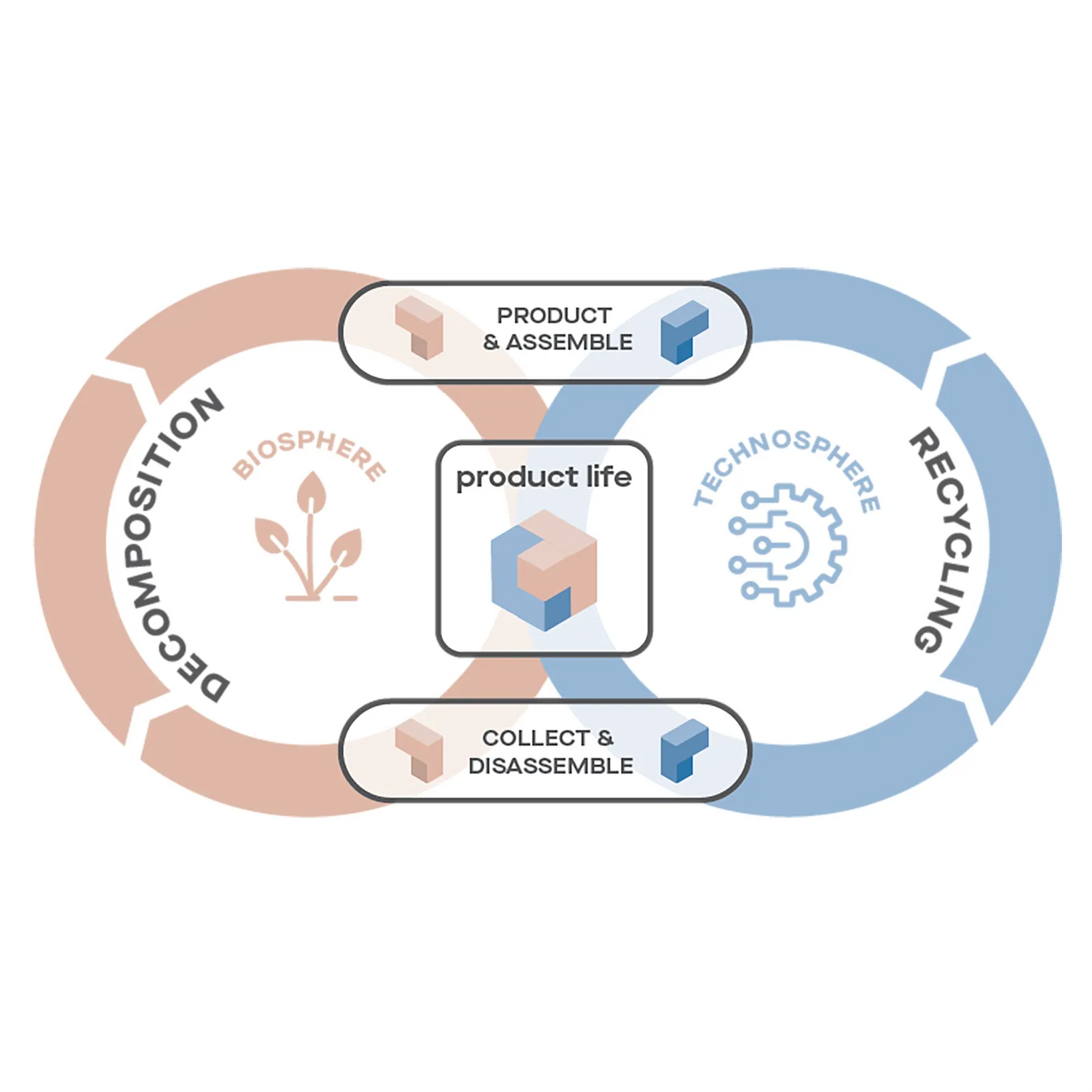 كجزء من مهمتنا في الاستدامة، نهدف إلى تصميم منتجات ذات هدف واعي وهو تعزيز الاقتصاد الدائري. وقد تمّ النظر في كل مرحلة من مراحل تصميم منتجاتنا ومصادرها وعملية الإنتاج وفقًا لمعايير نهج تصميم "من المهد إلى المهد" العالمية لضمان استمرارية منتجاتنا إلى الأبد.